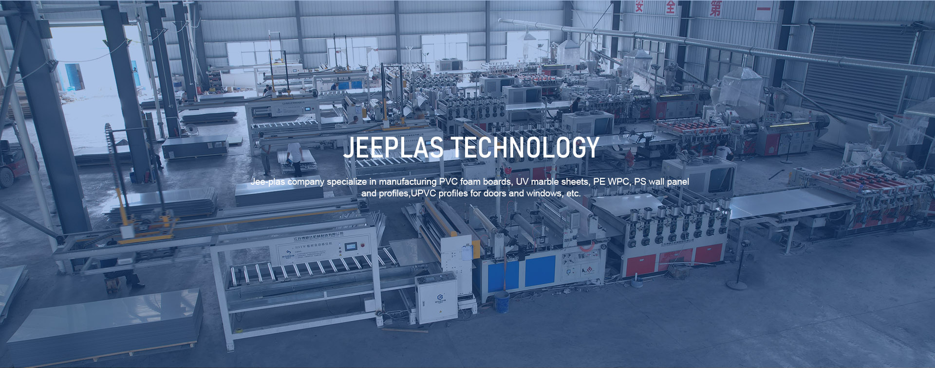 Jeeplas Technolongy company, a brother company ofthe Bogda Group (Since 1999). Jee-plas company specialize in PVC foam boards, sheets, PE WPC,PS wallpanel, Ps profiles, UPVC profiles for doors and windows, etc.strong support, Jeeplas has best manufacturing facilities, committed team and professional experience of PVC manufactur-ing. In this unique way, Jeeplas can control...